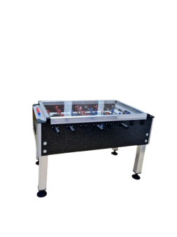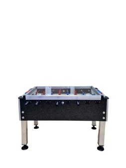 Ofis tipi kontrplak camlı langırt masası ürünümüz gövde olarak 25 mm kalınlığında su kontrası malzemeden imal edilmiştir. Ürünün gövde rengi tek renklidir ve renkler stok durumuna göre değişiklik gösterebilir. Masamızın kolları 18 mm çapında 2 mm et kalınlığında çelik çekme krom kaplamalı borudur. Bu borunun üzerine kaliteli oyuncu bebekleri plastik enjeksiyon yöntemiyle basılmaktadır. Bu çeşit masamızda oyuncu bebekleri 3-4-3 sisteminde yapılabilmektedir. Masa kollarımız teleskopik koldur. Ürünümüzün üstü topun dışarı kontrolsüzce gitmesini önlemek amacıyla 4 mm kalınlığında tamperli cam kullanılarak kapatılmıştır. Masamızın saha zemini camsız yada isteğe göre camlı olarak yapılabilmektedir. Ayaklar özel alüminyum profildir ve krikoludur (Masa yüksekliği ve dengesini ayarlamak amacıyla).
